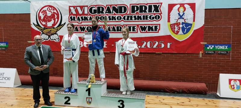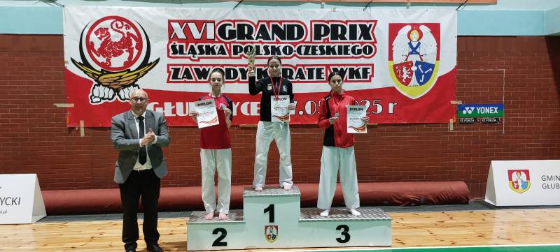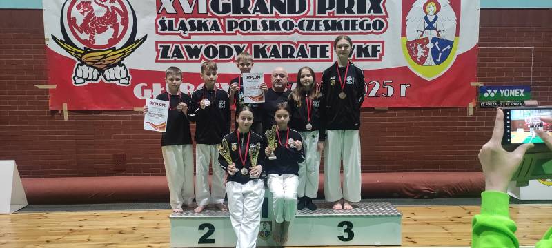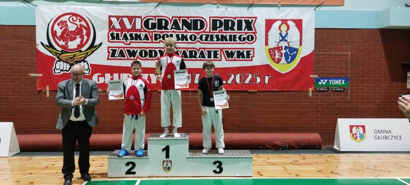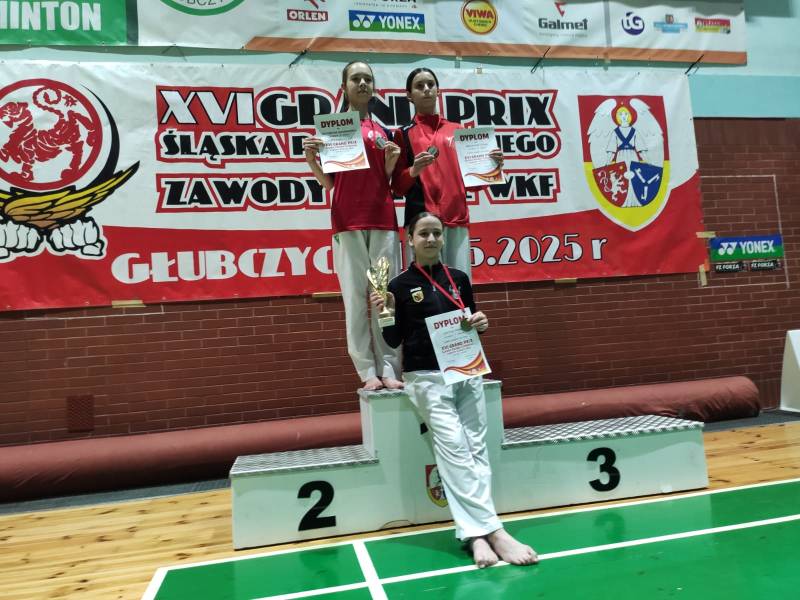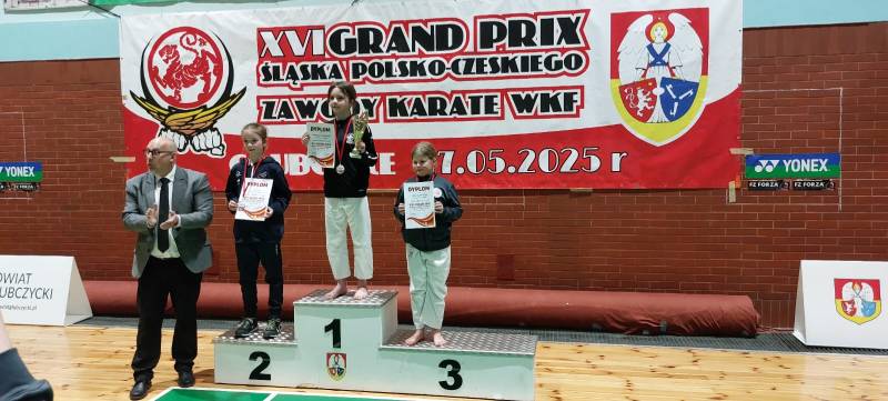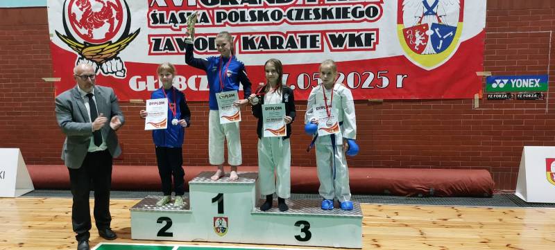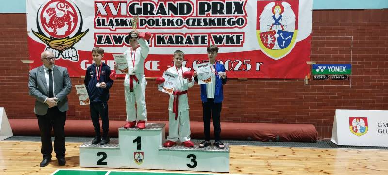 Nie zawiedli nasi młodzi sportowcy, którzy wzięli udział w 16 edycji Grand Prix Śląska Polsko-Czeskiego, który odbył się w sobotę 17.05.2025 w Głubczycach. W turnieju wzięło udział 156 zawodników reprezentujących 15 klubów z Polski i Czech. Ścinawski Klub Karate Goju Ryu reprezentowała 8 osobowa drużyna w składzie: Gabriel Lechocki, Tomasz Lechocki, Bianka Puzio, Karolina Łukasiewicz, Maciej Rostek, Tomasz Grzybalski, Justyna Pieńko i Julia Jarmuszczak. Nasi zawodnicy zdobyli 11 medali: 4 złote, 2 srebrne i 5 brązowych, co uplasowało nasz klub na 7 miejscu w klasyfikacji medalowej.