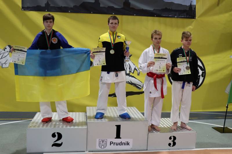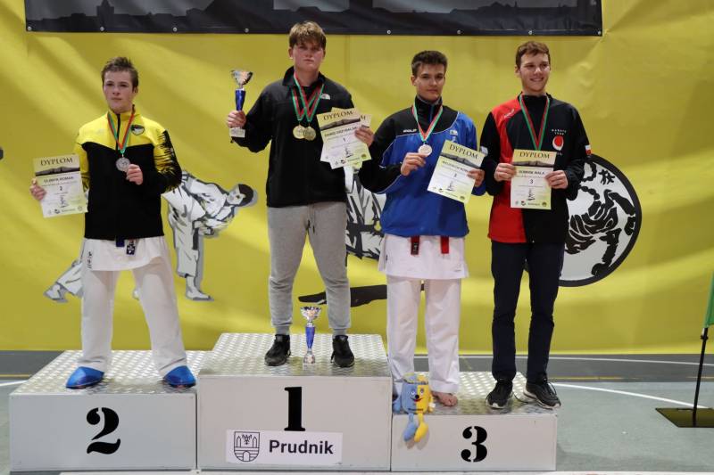 Złoty medal w kumite ind. Juniorów U18 (16-17 lat) +76 kg – Dawid Grzybalski