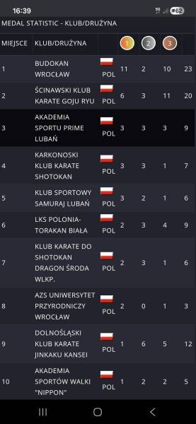 W konkurencjach karate WKF (kata, kumite) brało udział 150 zawodników z 18 klubów. Każdy z naszych zawodników dał z siebie wszystko zdobywając łącznie 26 medali: 7 złotych, 5 srebrnych i 14 brązowych a w kwalifikacji medalowej zajeliśmy 2 miejsce. Większość walk była przeprowadzona w systemie round robin (każdy z każdym). Ilość walk i nowych emocji buduje doświadczenie które przełoży się na cel do sukcesu.