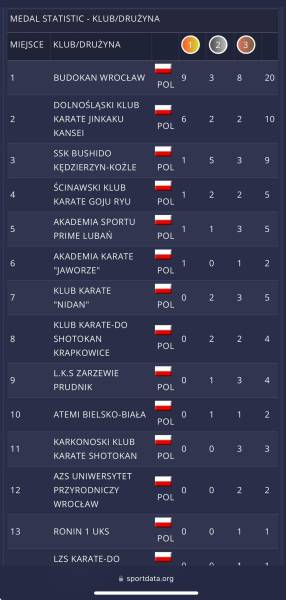 Poniżej przedstawiamy dorobek medalowy i punktowy naszych zawodników: