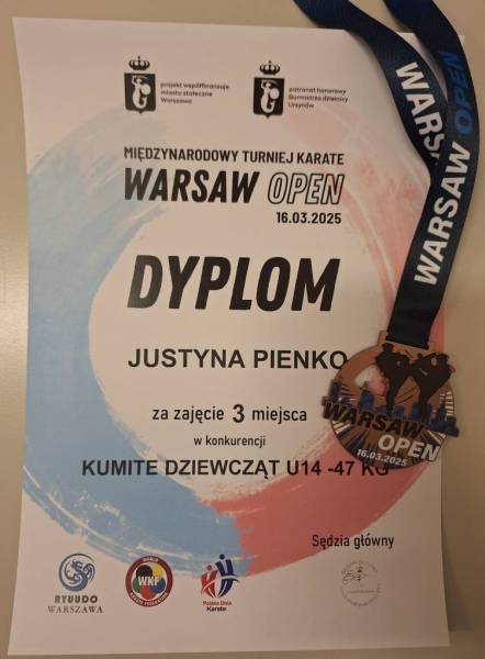 W niedzielę 16.03.2025 w Warszawie odbył się międzynarodowy Turniej rankingowy Polskiej Unii Karate Warsaw Open Karate WKF w którym brała udział nasza zawodniczka Justyna Pieńko